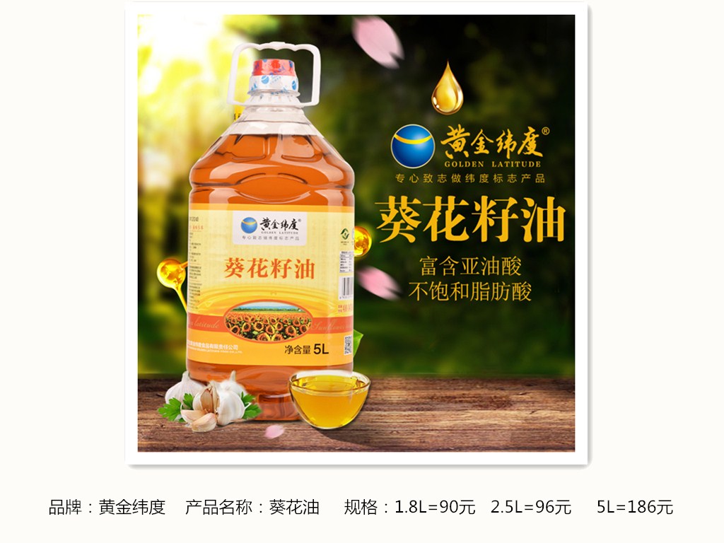 葵花油使用内蒙古日照充足的葵花籽做原料,颗粒饱满,经熟制压榨而成,清香不油腻。富含丰富的亚油酸,胡萝卜素等活性营养,含有84%不饱和脂肪酸,其中亚油酸的含量高达55%维生素E丰富,不含胆固醇,营养较为丰富。